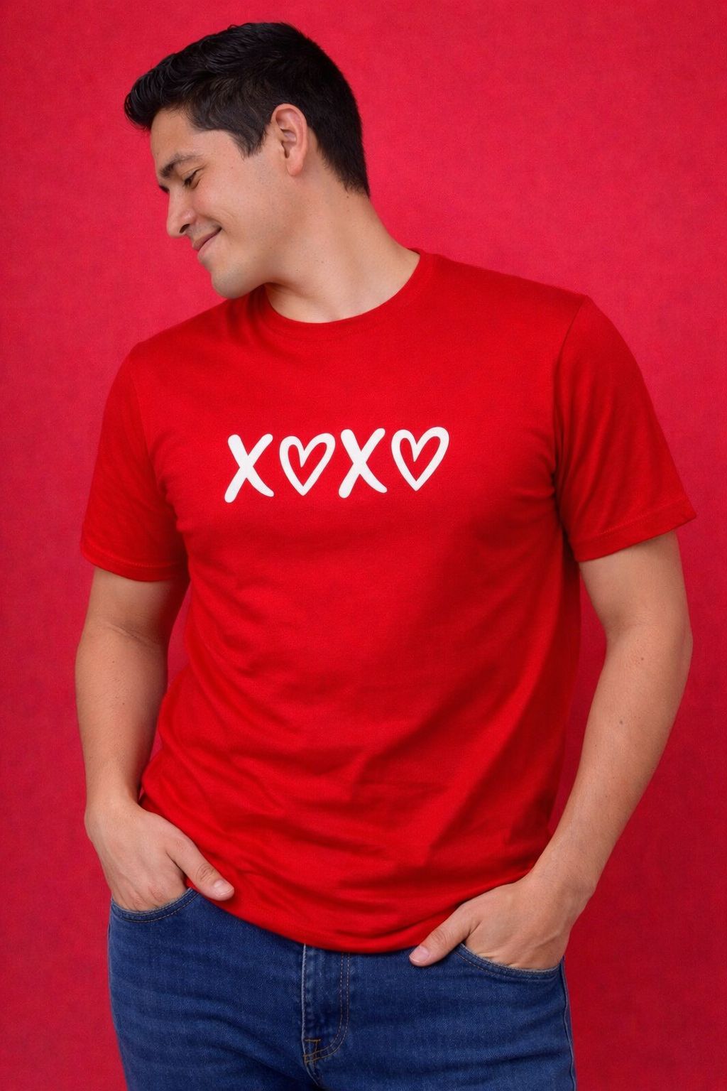 Playera de caballero confeccionada en tela de calidad superior, presentada en un vibrante color rojo que destaca por su versatilidad y elegancia. Cuenta con un diseño exclusivo de letras "XOXO" estampadas en blanco que añade un toque moderno y sofisticado a tu guardarropa. Perfecta para ocasiones casuales o para combinar con diferentes estilos, esta prenda ofrece comodidad y estilo en una sola pieza. Ideal para el hombre que busca expresar su personalidad a través de prendas con carácter distintivo.
